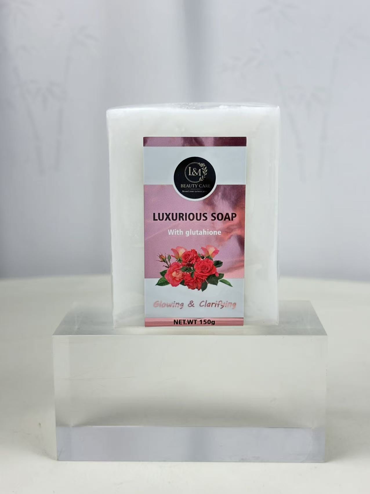 Experience radiant cleansing with the Luxurious Soap by L&M Beauty Care. Enriched with glutathione,